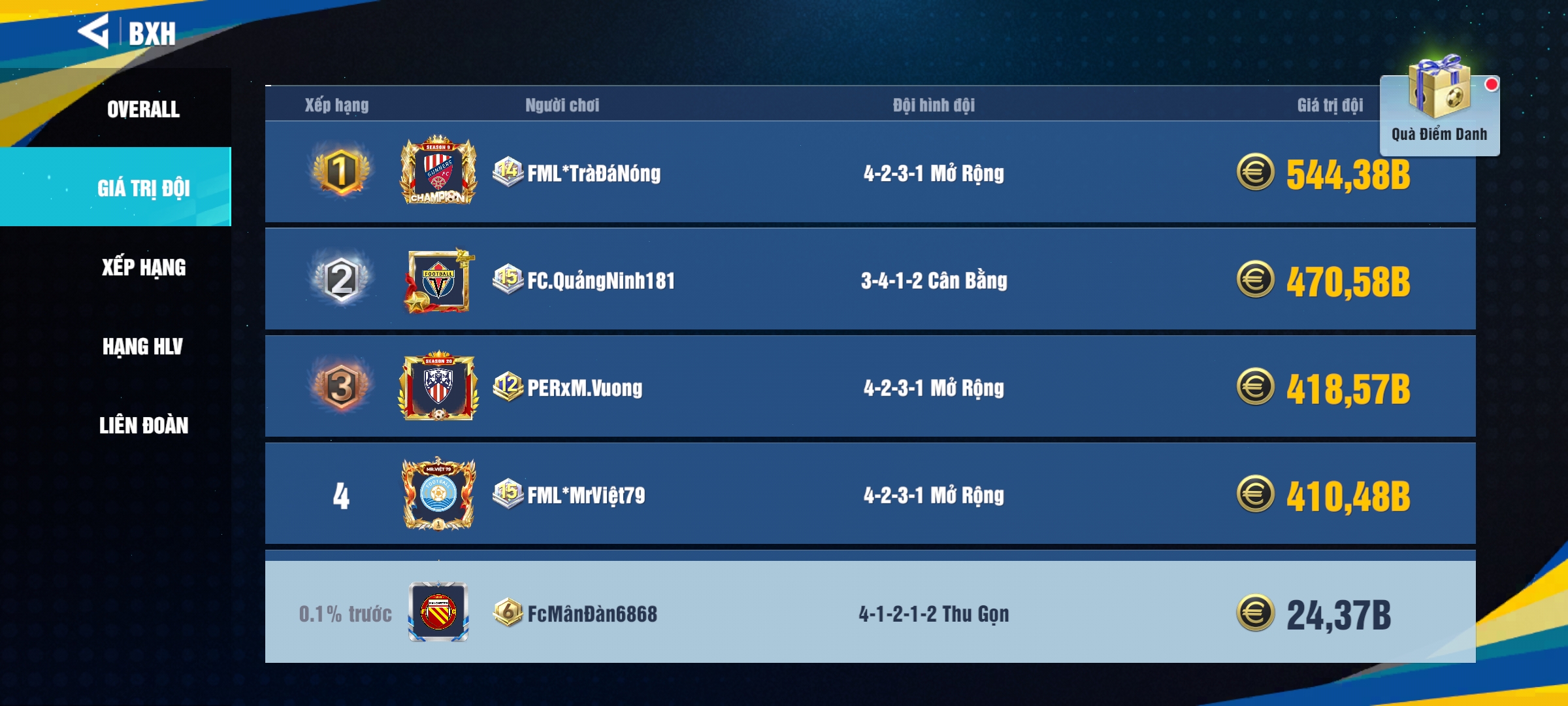 Tài Khoản Đội Hình